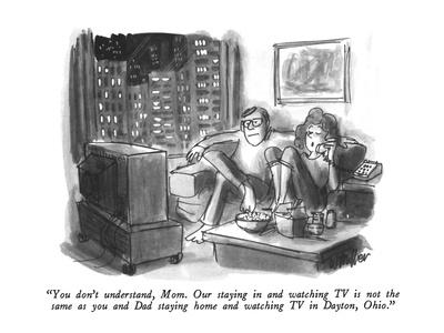 You Don T Understand Mom Our Staying In And Watching Tv Is Not The Sam New Yorker Cartoon Premium Giclee Print Warren Miller Art Com
